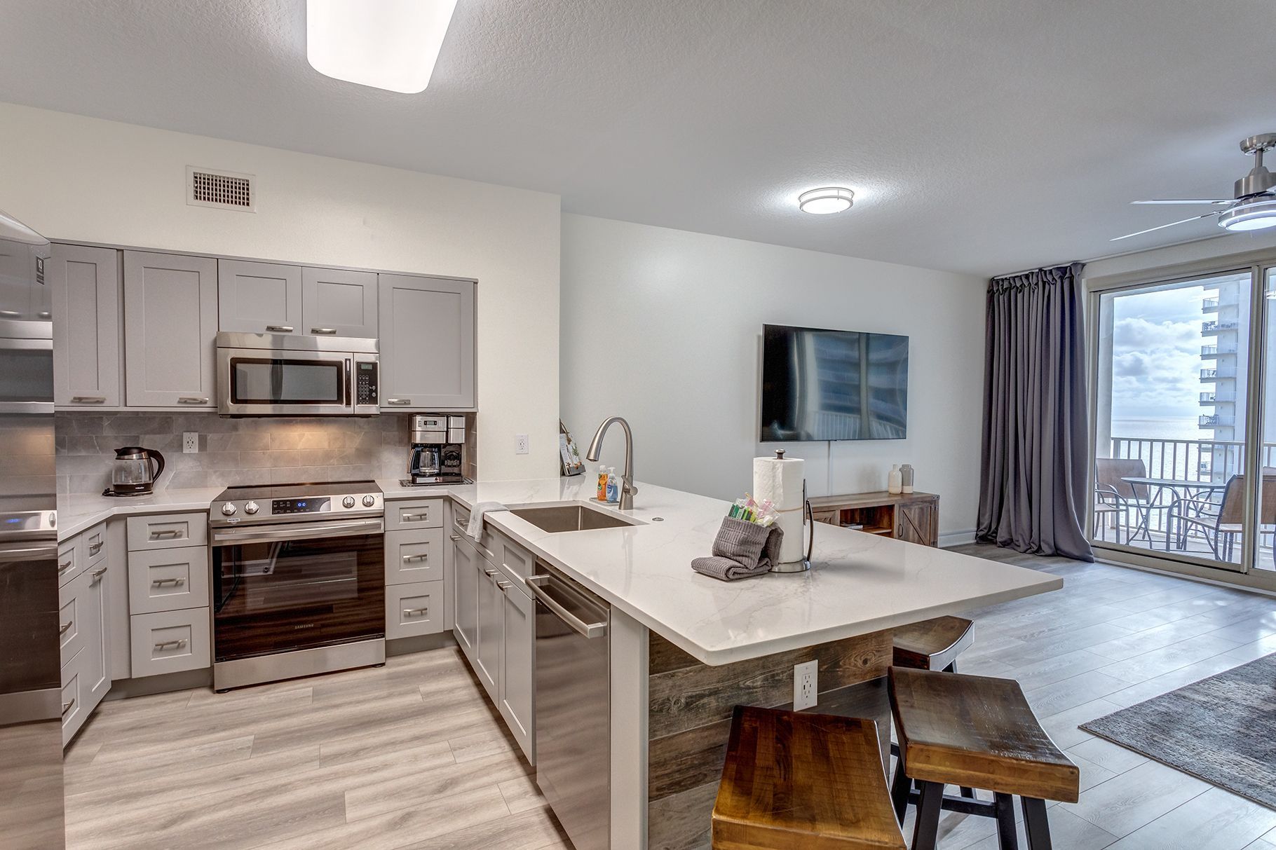 Enjoy breathtaking Gulf-front views and pool views from the 14th floor in this beautifully renovated luxury condo designed for comfort and relaxation.